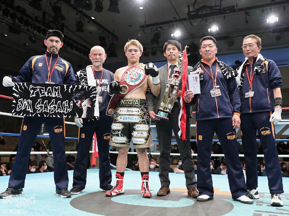 2021年10月に平岡アンディ(大橋)との日本&WBOアジアパシフィック・スーパーライト級王座決定戦に臨んだ佐々木だったが、計量オーバーによる失格で、試合も11回TKO負けを喫した。その後、チーム一丸となり、強さに磨きをかけてこの日を迎えた。新チャンピオンは、所属ジムに感謝の気持ちを言葉にした。