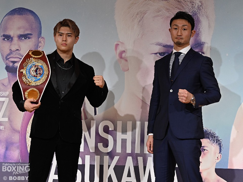 WBO-AP王者の佐々木尽(21=八王子中屋)と、日本タイトルを返上して世界トップ戦線入りを目指している小原佳太(36=三迫)が13日、「Prime Video Presents Live Boxing 第4弾」の発表会見に揃って登場。4月8日(土)に有明アリーナで対決する意気込みを、それぞれが語った。