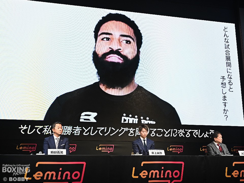 フルトンは会場内に流れたビデオメッセージを通じて「日本で素晴らしい体験、経験がしたいし興奮する試合がしたい。戦う準備はできている。試合が決まって最高の気分だ。井上は文句のつけようがない素晴らしいボクサー。私はどんなプランにも対応できる。ラウンド数は関係ない。当日は素晴らしいショーを見せる」とモンスター撃破に自信を示した。