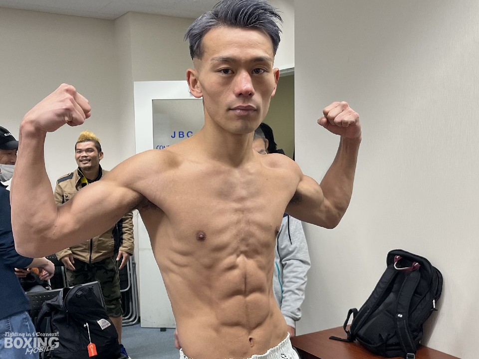 足取りも軽やかに計量会場入りしたチャンピオンは「減量も良かった」と切り出すと「明日の試合は、準決勝のような位置付け」と述べ、アマチュア時代に準決勝敗退を繰り返した自身を引き合いに「ここをクリアしたい」と気持ちを高めた。「最初は『いい戦い方、世界を見据える戦い』を考えていたが、今は、シンプルに殴り合いに勝つ! 倒されたら、倒し返せばいい」と覚悟も決めた。