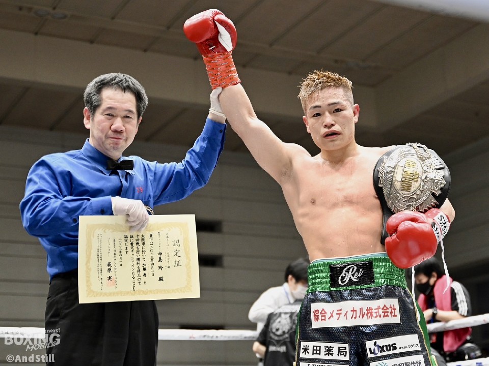 終始、攻め続けた中島が2度目の王座挑戦で戴冠した。リングを大きく使うサウスポー加藤に対し、中島はプレスをかけながら、ジワジワと攻め立てる。2回になると、中島は左ボディを多用。ガードの上だが徐々に効かせた。前半終了時の公開採点は49-46×1、50-45×2で中島がリード。加藤は左ストレート、左アッパーで反撃したが、中島はボディワークで回避。勝負が決まったのは9回。中島は左アッパーでグラつかせると、連打でダウンを奪い、試合を終わらせた。