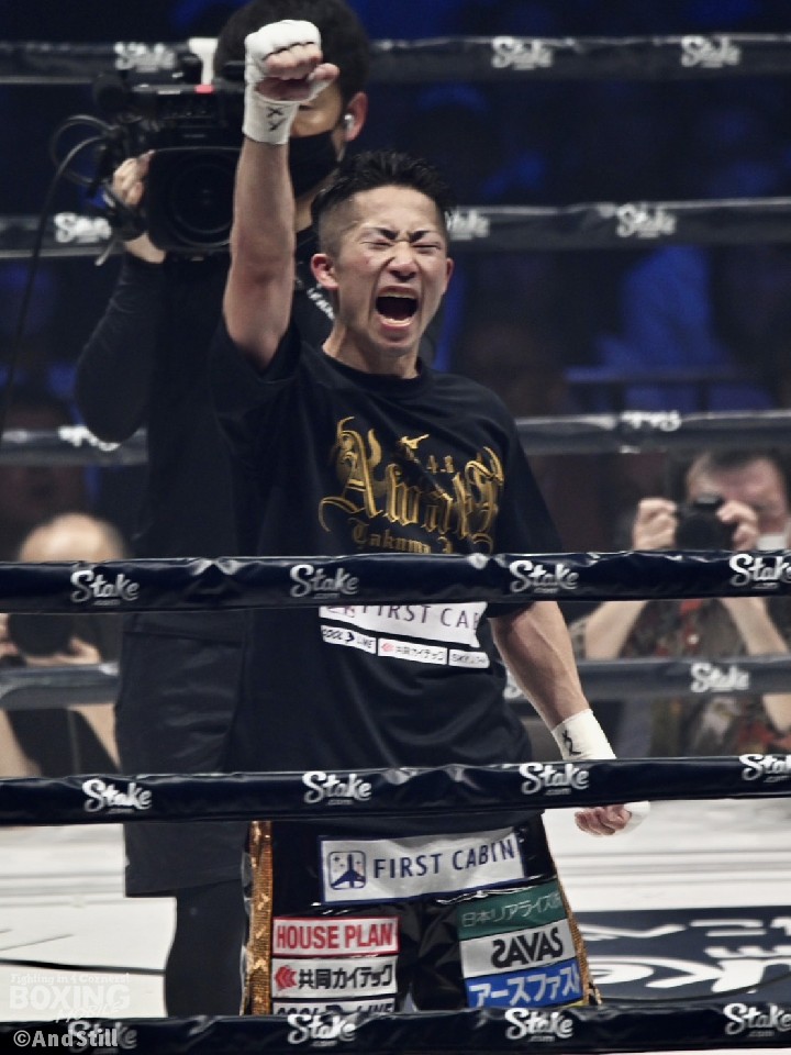 序盤から前に出てきたソリスに対して、拓真はカウンターを合わせて、確実にポイントを稼いで、自分のペースで試合をつづけた。途中、アクシデントで左目尻をカットして出血もあったが、拓真の気持ちは切れなかった。見事な完封勝利で、WBA王座を獲得した。