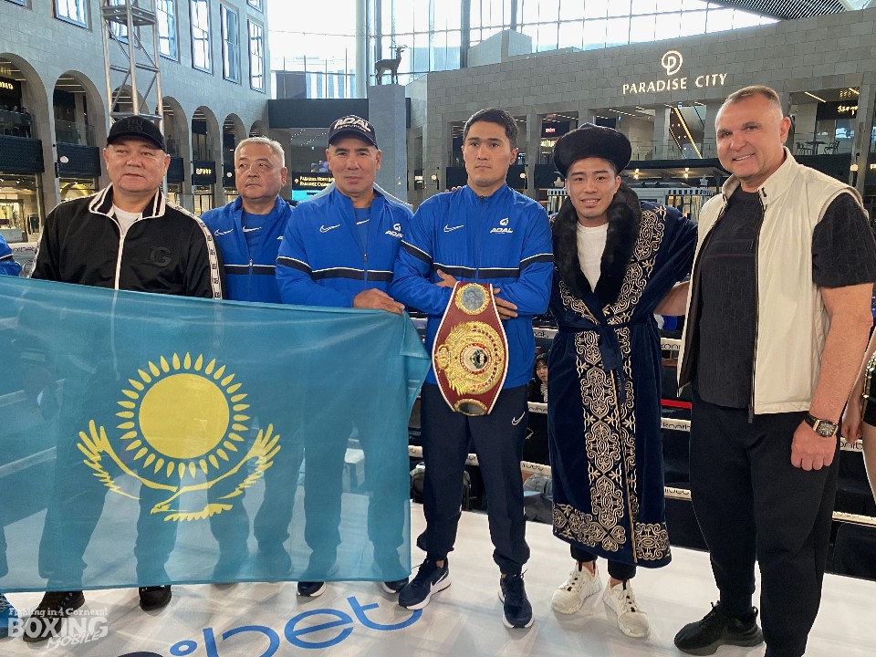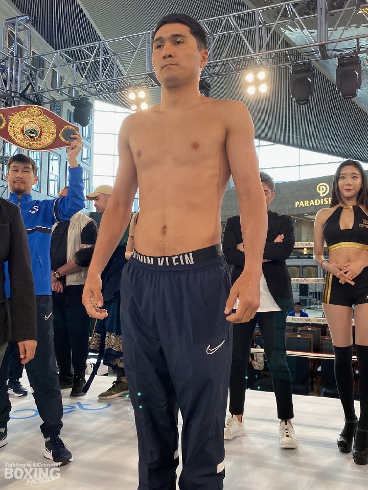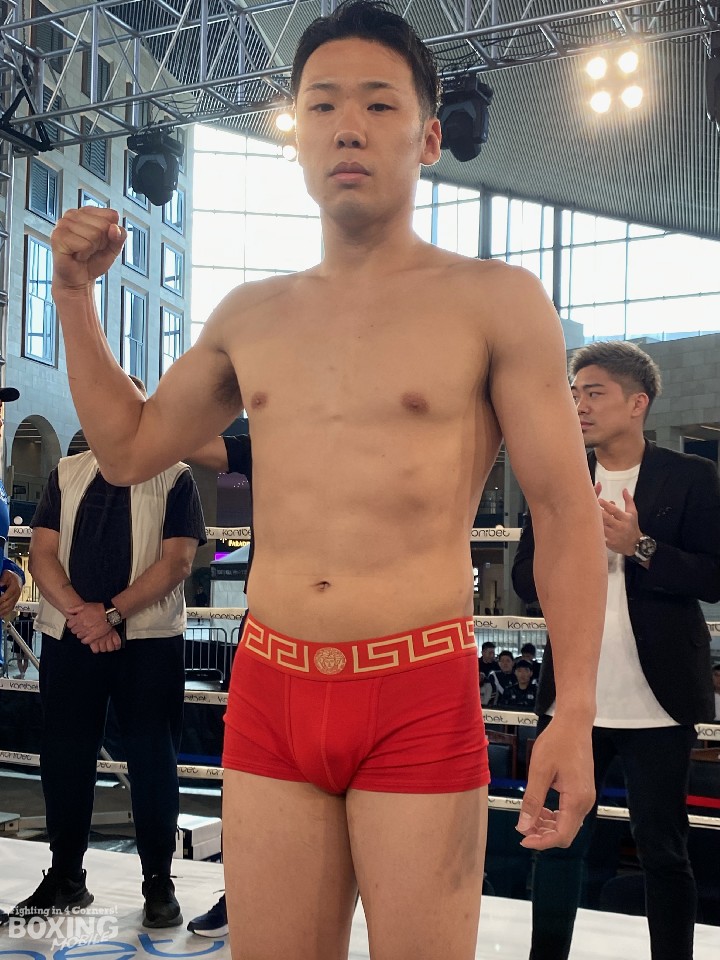 WBOインターナショナル・ミドル級タイトルマッチの前日計量が14日、韓国・仁川パラダイスシティで行われ、王者のメイリン・ヌルスルタン(29=カザフスタン)と、挑戦者でOPBF東洋太平洋同級王者の竹迫司登(31=ワールドスポーツ)が計量に臨んだ。