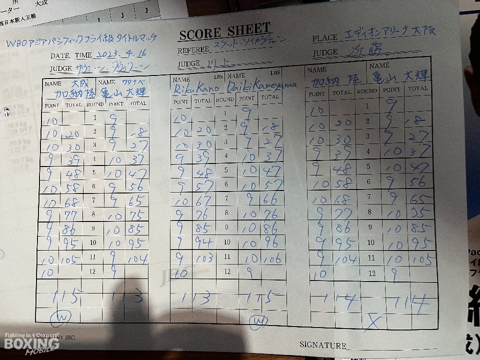 亀山は試合後、「チャンピオンの底力を感じた。中盤からパンチが力強くなってきた」と加納と対戦した感想を述べた。その上で、「前半ポイントを取られてると思った。後半、追い上げきれなかった。良いのを当てても出てきた」とチャンピオンのタフな精神力に脱帽した。