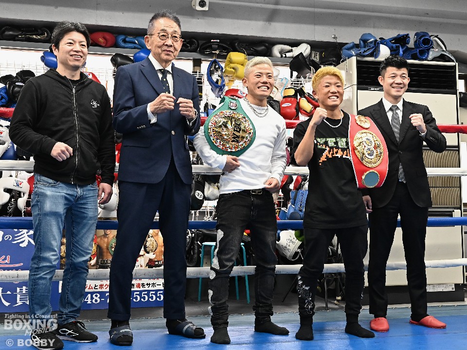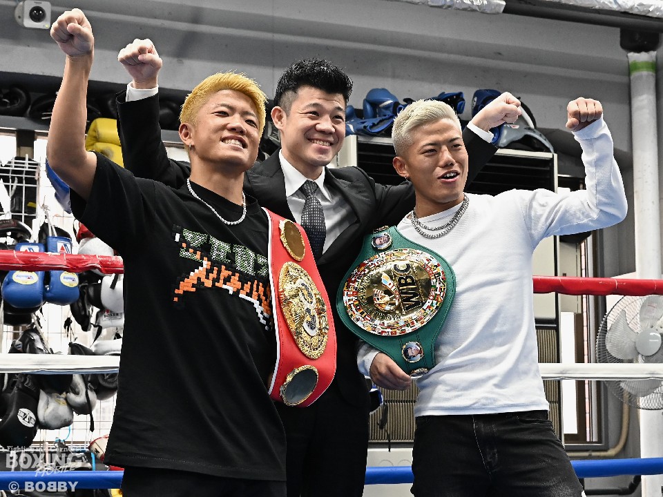昨夜の興奮冷め止まぬまま、それぞれKO決着でミニマム級暫定世界王座に就いた、WBC(世界ボクシング評議会)の重岡優大(26=ワタナベ)とIBF(国際ボクシング連盟)の重岡銀次朗(23=ワタナベ)兄弟が17日、東京・五反田にあるワタナベジムで一夜明け会見を開いた。