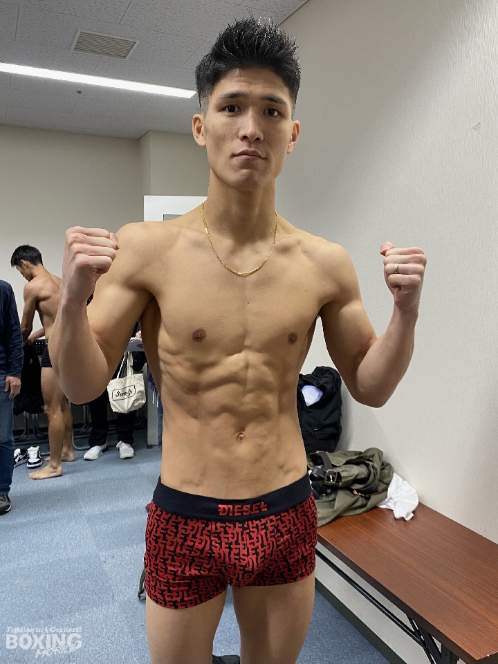 明日の試合は、「兄貴」と慕う元世界2階級制覇王者の京口紘人(30=ワタナベ)がセコンドに就く。「明日はしっかりと勝って、兄貴につなげる」。5月20日(土)に再起戦に臨む京口に勝利のバトンをつなぐ。