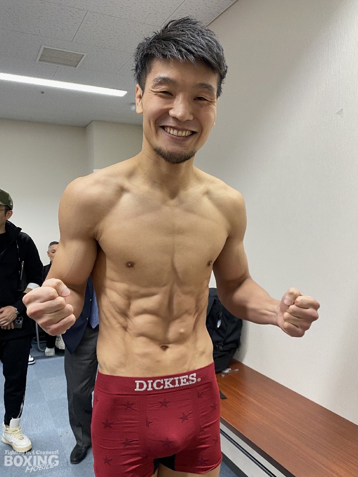 続けて秤に乗った坂井は、100gアンダーの66.5kgでパスした。重田に勝ち越してはいるが、前回の試合は序盤に2度ダウンを喫し、中盤から盛り返して引き分けに持ち込んだ。