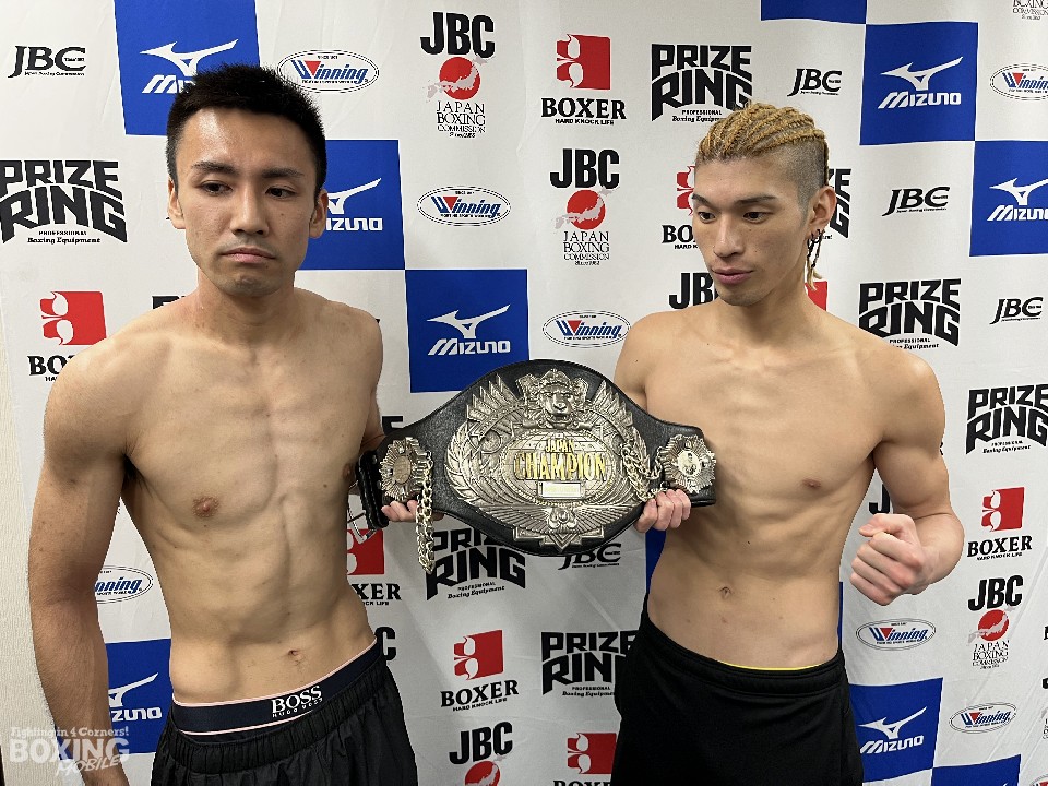日本スーパーフライ級王者決定戦の前日計量が12日、都内のJBC(日本ボクシングコミッション)事務局で行われ、同ランキング1位の川浦龍生(29=三迫) と同2位の高山涼深(26=ワタナベ)が秤に上がった。