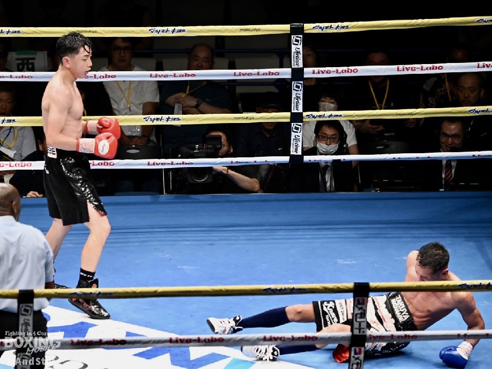 森の左ストレートでダウン!