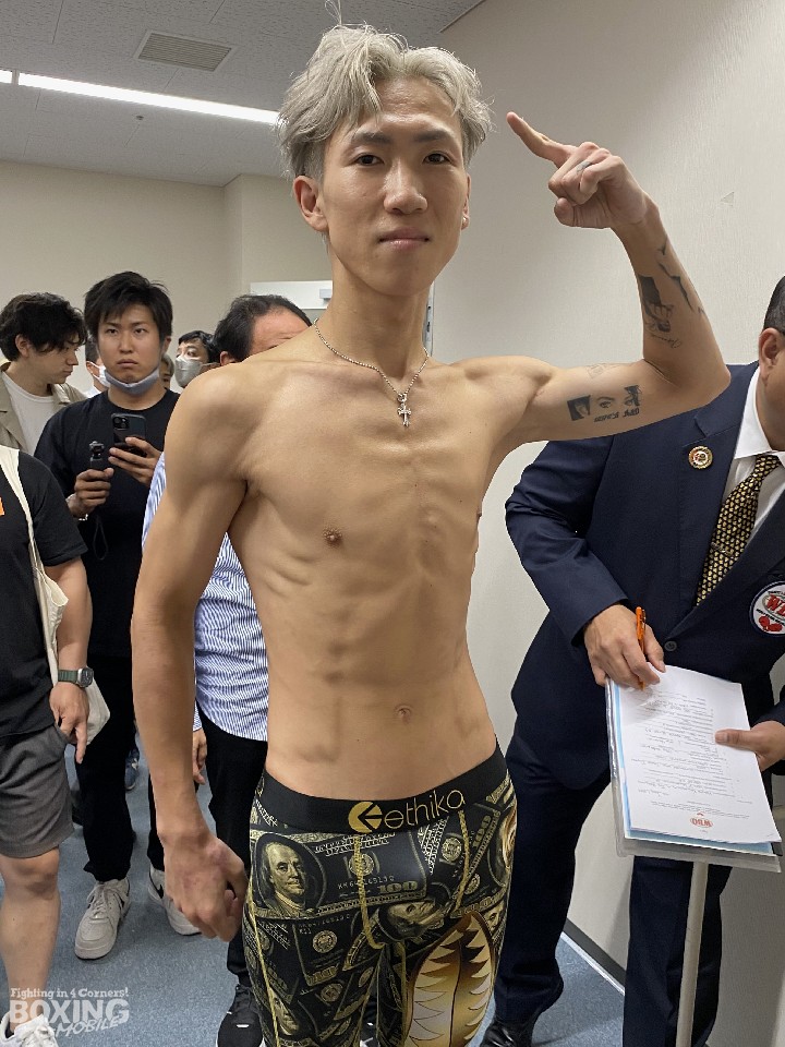 元日本ユース・フライ級王者の白石は、昨年11月に約3年ぶりにカムバック。復帰2戦目でタイトルに挑む。200gアンダーの52.0kgで計量を終えると「すべてにおいてレベルアップした。明日はぶっ潰す!」と自信たっぷりに言い切った。