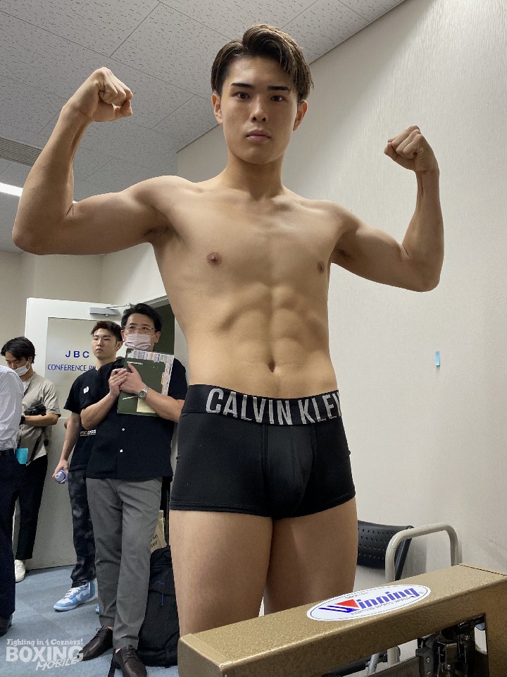 佐々木は、今年1月に豊嶋亮太(27=帝拳)から王座を奪取すると、4月に前日本同級王者の小原佳太(36=三迫)に3回TKO勝ちし、初防衛に成功。ウェルター級国内ナンバーワンを証明した。先に秤に乗ると、ウェルター級リミットを200g下回る66.4kgでクリア。「計画を立てて、しっかりと落とせた」と仕上がりの良さを強調した。