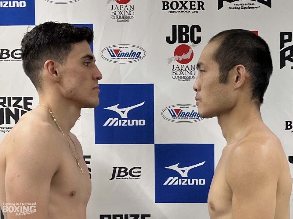 「3150 FIGHT SURVIVAL vol.7」のメインイベントの前日計量が19日、都内のJBC事務局で行われた。64.0kg契約8回戦のリングで対峙するのは、WBO世界スーパーライト級8位のホセ・マヌエル・ガルシア・バスケス(24=メ)と、スーパーライト級で世界挑戦した経験もある実力者、近藤明広(38=一力)。ライト級時代には日本タイトルを獲得し、スーパーライト級でもOPBF王座に就くなど、国内やアジアのトップ戦線で戦ってきた近藤は、世界を目指して世界ランカーを相手に実力を示すことができるのかー。後楽園ホールで20日、大一番を迎える。