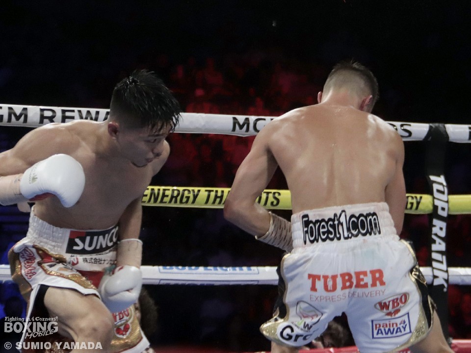 スパーリングは、渡米の翌朝から始まるとのことで、一日おきに9月3日まで実践感覚を研ぎ澄ます。それが「当たるっていうひらめき作り」につながるという。世界2階級制覇を果たした前回のアメリカでの試合では、パターンを変えて3度ダウンを奪ったが、その”ひらめき”が冴えわたっていたことを証明した。試合を決めた3度目のダウンを奪ったシーン、テレビ越しには、倒れる相手を目で追っているように映ったが、「目を切らないことは大事」と、集中力が下がっても相手から目を離さないことを心がけていると解説してくれた。
