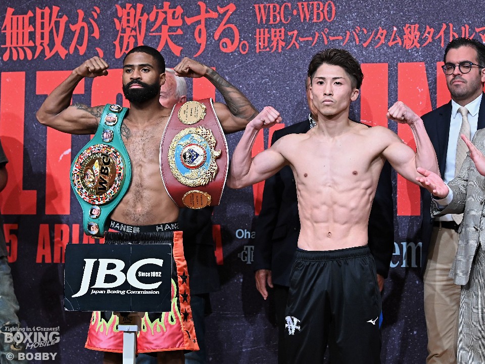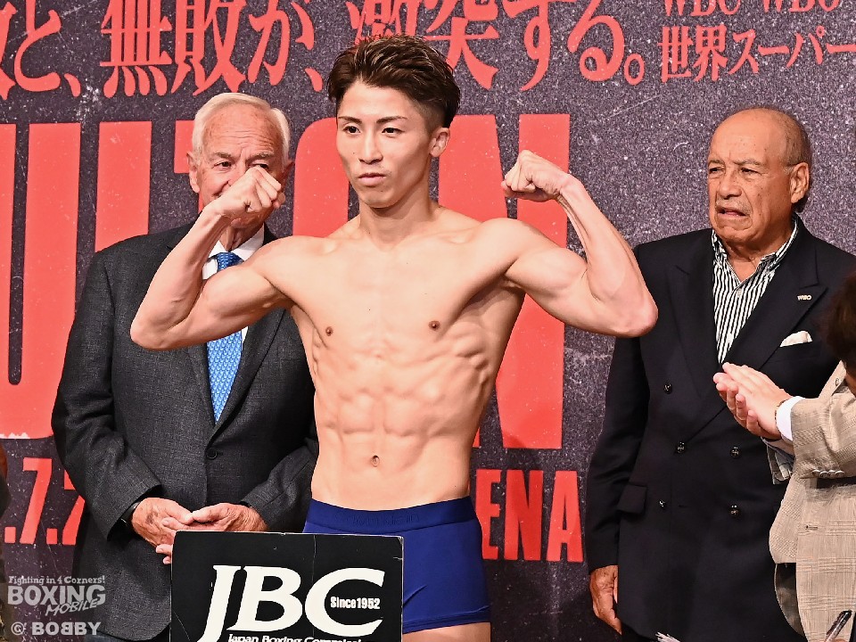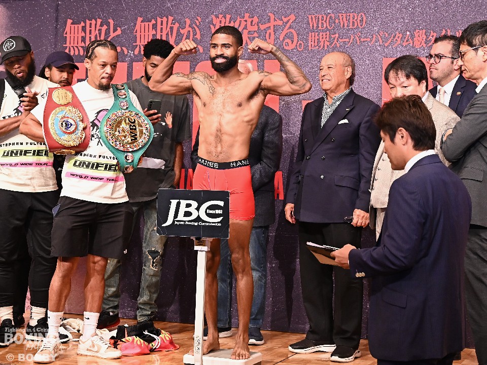 WBC(世界ボクシング評議会)・WBO(世界ボクシング機構)スーパーバンタム級統一王者スティーブン・フルトン(28=米国)とバンタム級時代に世界4団体統一を成し遂げた井上尚弥(30=大橋)が24日、横浜市内のホテルで前日計量に臨んだ。