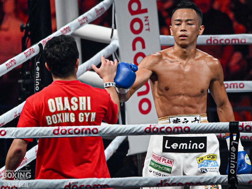 この日もKO勝利を収めたことで、プロ戦績を7戦全KOとした武居は「倒し切れたのはよかった。ボディは得意な技の一つ。インターバル中に八重樫東トレーナーから『下から』と指示を受けていた」と、試合を決めた場面を振り返った。当たった瞬間は「かすった感じだった」と表現した武居だが、八重樫トレーナーは「効いていた」と冷静に振り返った。