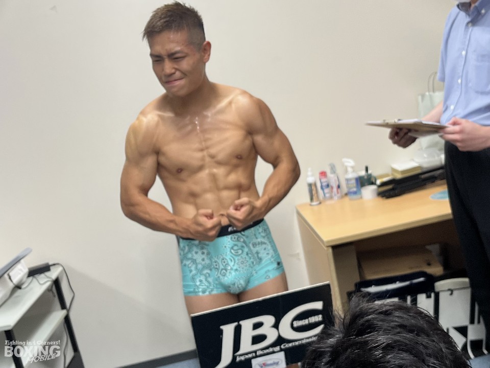 大阪から新幹線で移動してきた中島は、1回目の計量を100グラムオーバーしたが、トイレから戻ると69.8kgで無事クリア。家を出る前には200グラムオーバーだったことから移動中に水分が抜けることを計算していただけとのことで「新幹線の中で炭酸水とおにぎりを食べた」と苦笑いした。体調に関しては「バッチリです」。