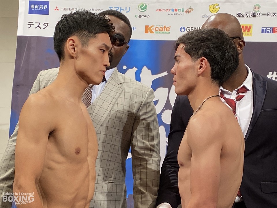 IBF(国際ボクシング連盟)バンタム級挑戦者決定戦の前日計量と記者会見が10日、大阪市内のホテルで行われ、同級5位の西田凌佑(27=六島)と同級6位のクリスチャン・メディナ・ヒメネス(23=メキシコ)が対峙した。