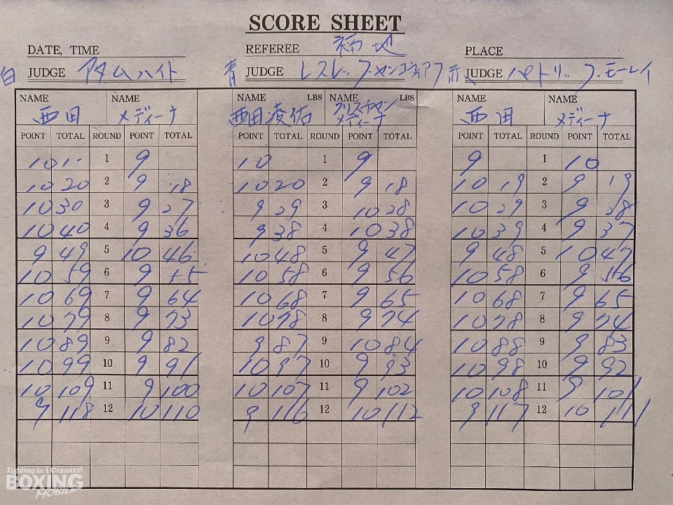 メディーナに関しては「パワフルで、目のフェイントなど、リング下で見ていると、上手かった」と称えた。その上で、「西田にとっては、タイプ的にも技術的にも一番、強敵だったと思う」と切り出すと、「相手も西田も、最後はペースダウンした。(課題は)パンチの精度、9ラウンドから雑になった」と、世界挑戦に向けて修正点を挙げた。
