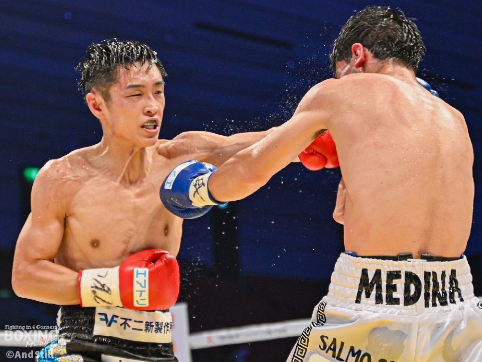 右ジャブを丁寧に突いて、ゆっくりサークリングしながら、距離が近くなると前に出てくるメディーナの顔面を左ストレートで弾いたサウスポーの西田が、終盤に入ると徐々にポイントを稼いだ。