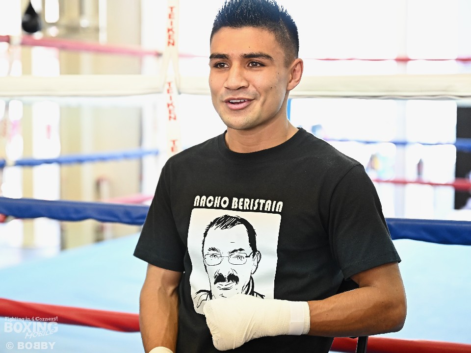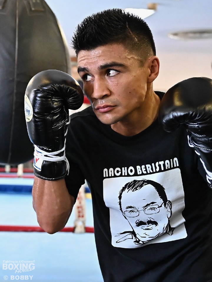 師匠であるイグナシオ・ナチョ・ベリスタイントレーナー(84)の似顔絵がプリントされたTシャツを着ていた。ベリスタイン氏は、これまで数多くの世界チャンピオンを育て上げた名トレーナーだ。今回は、メキシコでほかの選手の試合があるため来日はせず、エリック・ぺレストレーナーが帯同している。