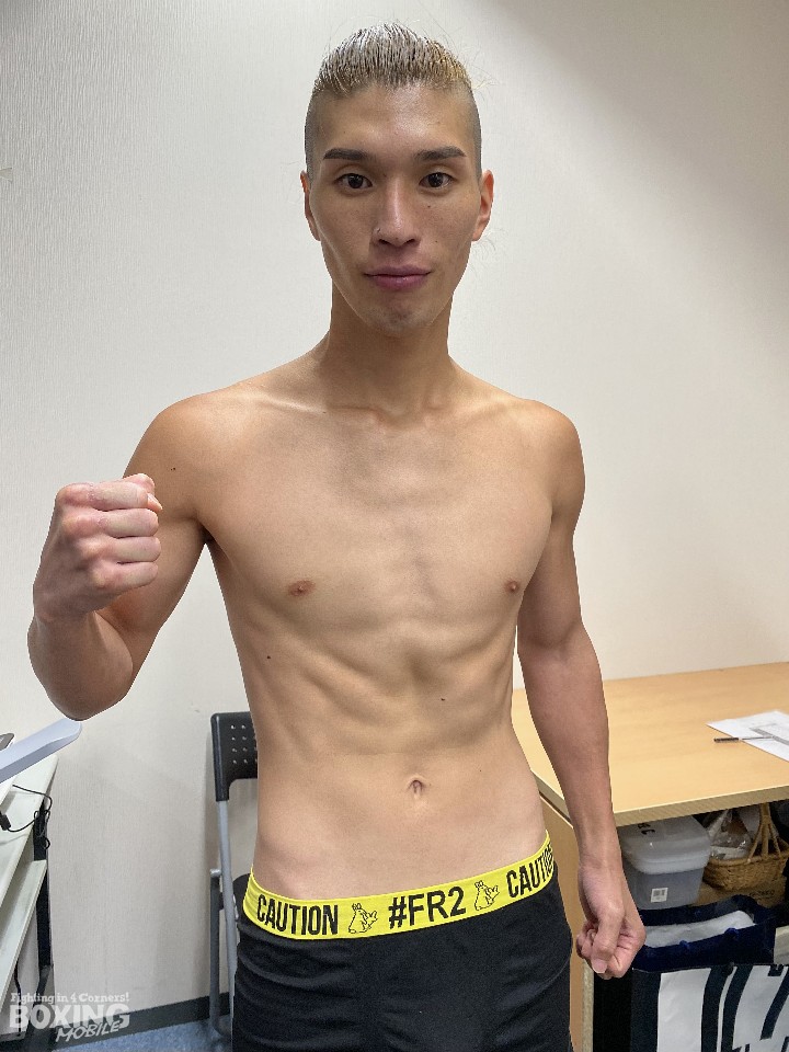強打を誇る高山に対し「プレスをかけて強振してくると思うが、自分の距離をキープしてパンチを当てるだけ」と自信を示すと、「相手はKO勝ちしてるので強く見えるかもしれないが、自分相手だとそうはならない。歴史のある日本のベルトを獲って実力を証明する」と意気込んだ。
