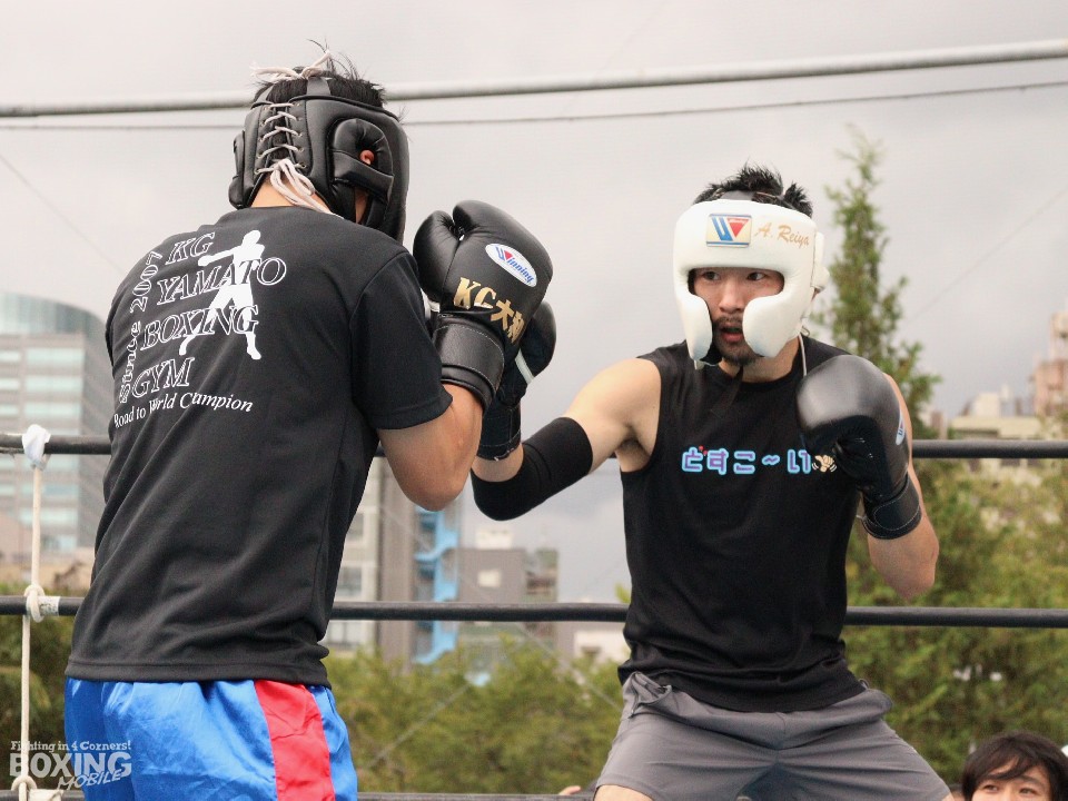 IBF(国際ボクシング連盟)フェザー級1位の阿部麗也(30=KG大和)は、同門で11月7日(火)にデビュー戦を控える佐藤諒(32)と3ラウンドのスパーリングを披露した。「屋外でスパーリングをするのは初めてだが、新鮮ですね」。