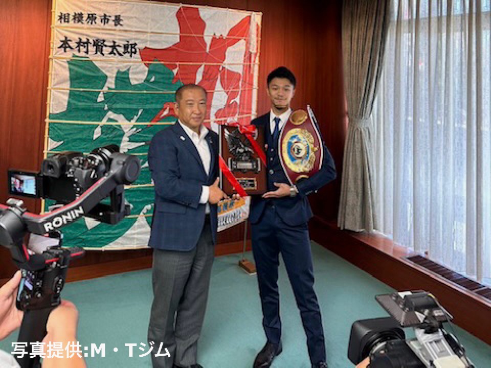 WBO世界スーパーフライ級王者の中谷潤人(25=M・T)が6日、相模原市の本村賢太郎市長に表敬訪問。初防衛成功を報告した。