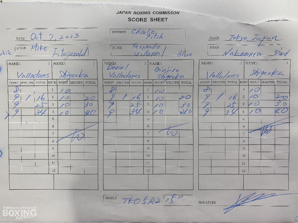 サウスポー重岡が圧巻の内容を見せた。頭から突っ込んでくるバラダレスに対し、バックステップで上手く対応すると、左ストレートでダウンを奪う絶好のスタートを切った。しかし、偶然のバッティングで、バラダレスは右前頭部、重岡は右側頭部をカットした。2回、再三バッティングを繰り返すバラダレスに対し、レフェリーは減点を課した。3回以降も重岡は上下に打ち分け、ダメージを与えると、5回に左アッパーから連打を浴びせてフィニッシュした。