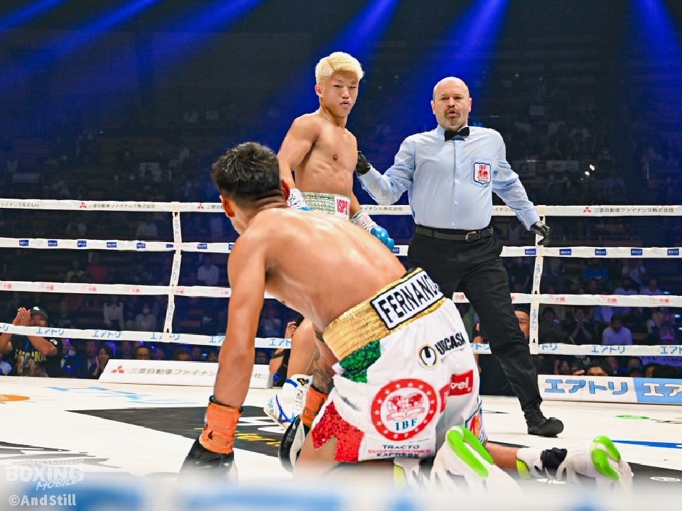 初回から頭をぶつけてくるバラダレスに対し、距離を保ちながら圧勝した。「頭がぶつかりそうで、行きたくてもいけない時があり、練習の全てを出せたとは言えないが、左ストレートで初回にダウンを奪えたこと、ノーモーションのストレートで試合を支配できたことが、今までよりも進化できた部分」。