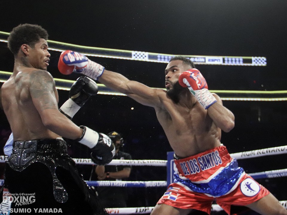 技術のスティーブンソンと強打のサントスによるサウスポー対決となった王座決定戦は、アタックゾーンぎりぎりを踏み越えず、パンチの交換という意味では、アクションの少ないスタート。中盤に入っても互いに距離の取り合いとなり、緊張感とスピード感は伝わってきたものの、手数はセーブする展開のまま終盤に入った。フェイントの数に比べて、圧倒的にパンチの数が足りない中でも、スティーブンソンが入り際にカウンターを合わせて、わずかに優位なラウンドを作っていった。最終回にようやくサントスもアタックして、ボディにパンチを当てるも試合終了のゴング。3-0(115-113、116-112×2)で、スティーブンソンが不本意な内容ながら3階級制覇を達成した。