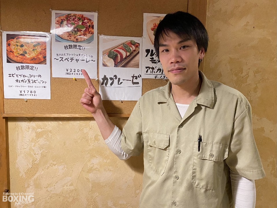 元日本バンタム級王者の大森将平氏は、2020年12月の試合を最後にグローブを吊るし、現在はピザ職人を目指して、兵庫県丹波篠山の人気イタリアン「kuwamonpe(クワモンペ)」で修行中だ。