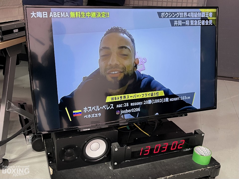 大晦日に試合を迎えることが決まったペレスもオンラインで会見に参加し、「大変嬉しい。このチャンスをくれた井岡チャンピオンには、感謝している。グレートな試合、スペクタクルな試合をしたい。100%仕上げる」と、自身2度目の世界挑戦が決まったことに感謝の気持ちを伝えた。それでも「井岡のことは、チャンピオンとしてリスペクトするが、ベルトはベネズエラに持って帰る」と気持ちを込めた。