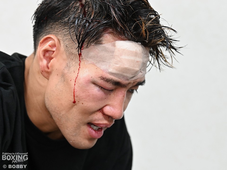 一方、皆川はカットした額の治療に時間がかかったが、応急処置を終えると控室で取材に応じた。「カットして血が目に入り、右目がまったく見えなくなってしまった。普段ならもらわない右ストレートを浴びたりと、距離感が狂ってしまった」と偶然のバッティングによるカットを悔やむと、「(スリップ気味の)ダウンといい、バッティングなど、今日は彼の方が運が良かった。でも、これも実力」と話した。