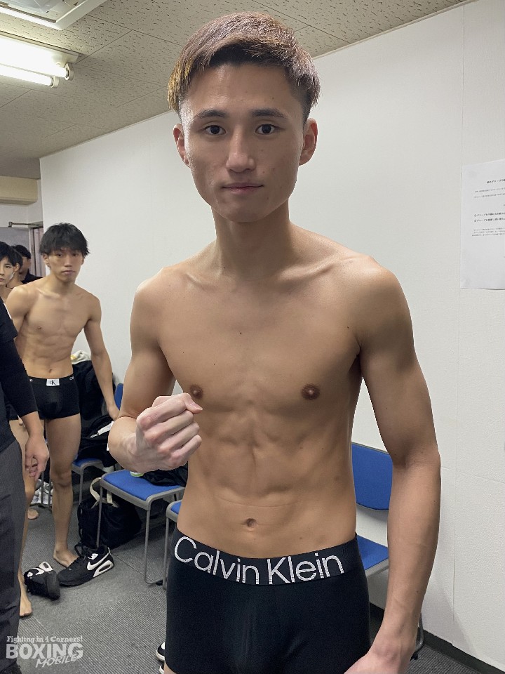 拳を交える富施は、リミットの53.5kgで秤を降りた。今年5月のバンタム級モンスタートーナメントで増田陸(26=帝拳)に敗れて以来の再起戦となる。「ランキング6位だったが、上位ランカーが辞退したため、自分にチャンスが回ってきた。しっかりと掴み取りたい」と話すと、「相手はジャブとストレートが上手いが、自分のスタイルを崩さず、流れで倒しにいきたい」と思いを込めた。