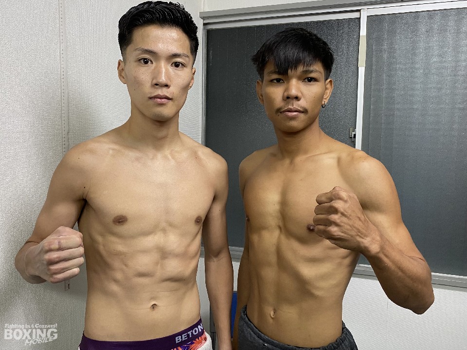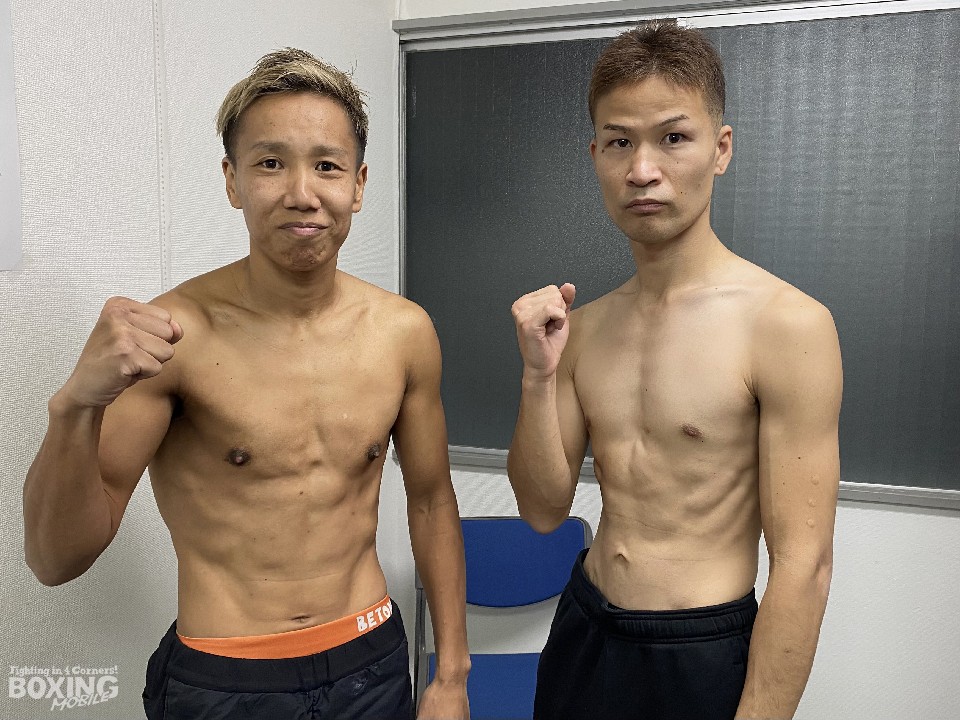 日本バンタム級挑戦者決定戦の前日計量が9日、大阪市内の関西JBC事務局で行われ、同級1位の那須亮(28=グリーンツダ)と同級2位の富施郁哉(25=ワタナベ)が会場に姿を現した。