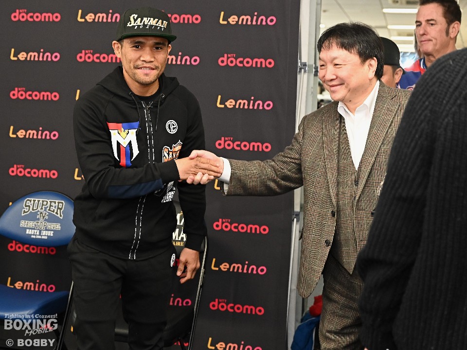 練習前の会見では、対戦する井上尚弥に関する質問も多く出たが、何を警戒するかを訊ねられても、対策練習の内容を聞かれても、「26日の試合を見ればわかる」の一点張り。それでも、「勝つ自信はある」とキッパリ。会見に同席した MPプロモーションのショーン・ギボンズ社長は、タパレスが勝つ可能性を「200%」と大声で答え、エルネル・フォンタニーリャ トレーナーは「2000%」と続けた。