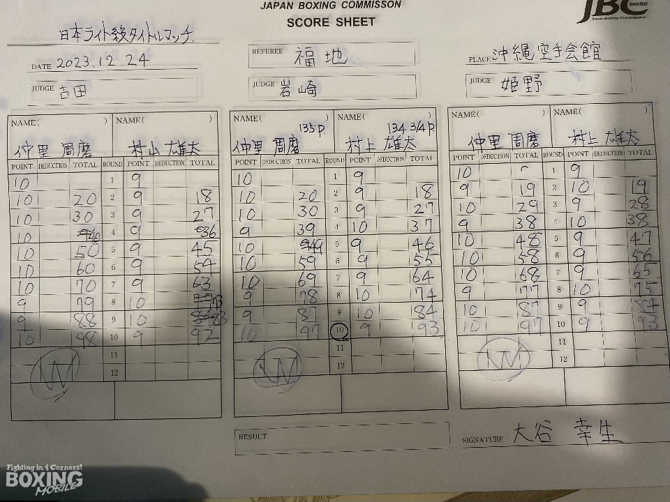 凱旋防衛戦に臨んだ仲里が、地元の期待に応えたのか? それとも、6戦目でタイトル初挑戦に臨んだ村上がベルトを奪ったのか?