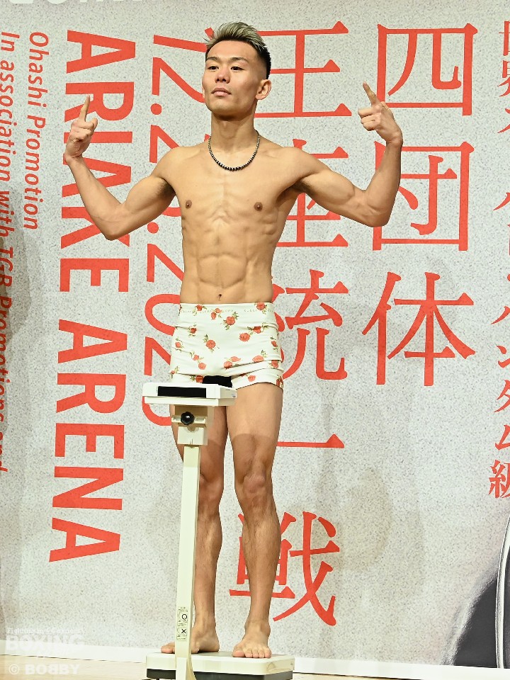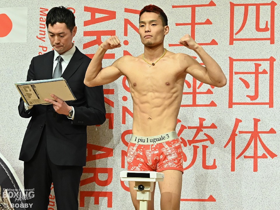 モンスタートーナメントバンタム級決勝&日本バンタム級タイトルマッチの前日計量が25日、横浜ベイシェラトンホテル&タワーズで行われ、日本王者の堤聖也(28=角海老宝石)と同級3位の穴口一輝(23=真正)が静かに火花を散らした。