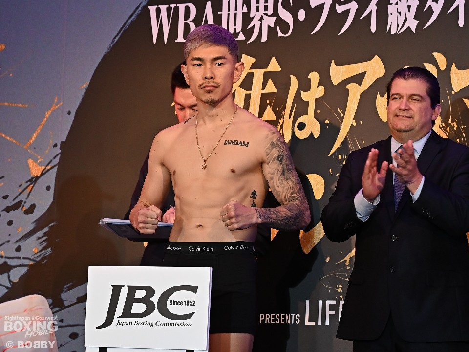 2度目の世界挑戦のペレスは「計量を終えてパワーを感じる。明日の試合が待ち遠しい。日本のみなさんに素晴らしい試合を見せる。チャンスをくれた井岡選手、尽力してくれたチームに感謝している。勝ってベネズエラにベルトを持ち帰る。リング上で最高のパフォーマンスを見せる」とベルト奪取を誓った。ペレスも気合いに満ち溢れた表情を浮かべていた。