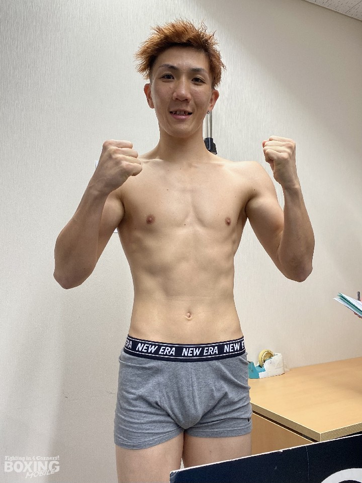 タイトル初挑戦の佐伯は、400gアンダーの60.8kgで秤を降りた。タイトルマッチのオファーにも即決したという。「相手はアマチュア経験が豊富でテクニックがある。自分が上回っているのは若さ」と控えめだった。