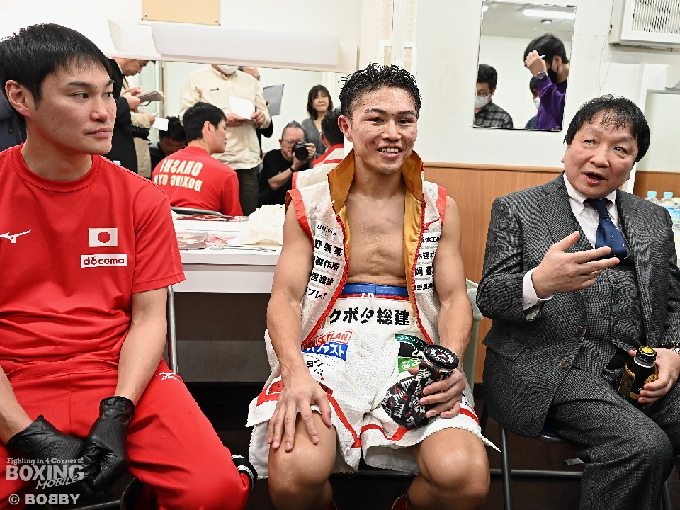 3回には左カウンターで鮮やかに倒した。保田は「(左カウンターは)練習していたパンチで自然と出た」と話すと、横で聞いていた大橋秀行会長は「自分から仕掛けて、あそこで仕留めないといけない」と手厳しかった。それでも最後は「内容としては悪くなかった」と及第点を与えた。