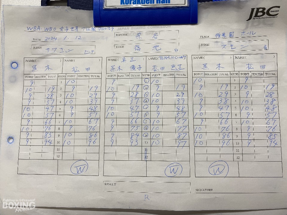 WBA(世界ボクシング協会)・WBO(世界ボクシング機構)アトム級統一王者の黒木優子(32=真正)と同級2位の松田恵里(29=TEAM10COUNT)が12日、後楽園ホールで開催された「NTT ドコモ Presents Lemino BOXING フェニックスバトル109」のメインイベントで激突した。