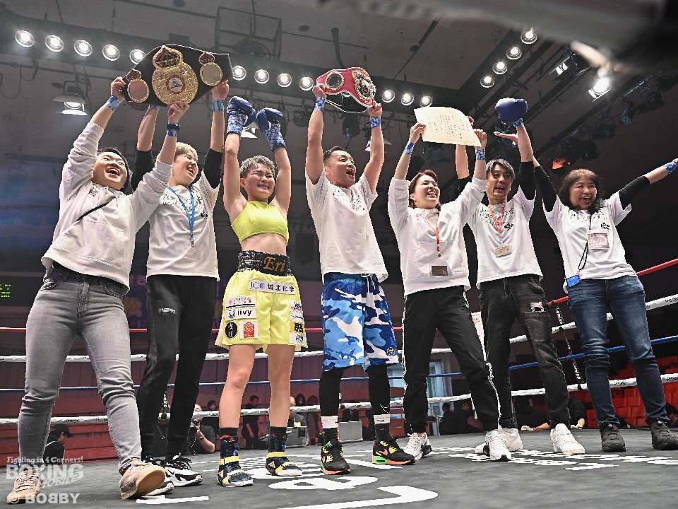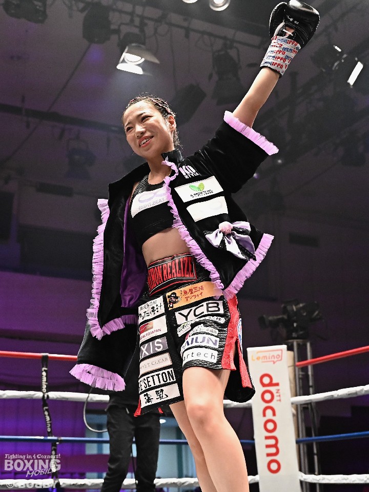 今後の目標を聞かれた松田は「山中菫選手が(IBF)新チャンピオンになり、王座統一戦をやりたい気持ちもあるが、強さに磨きをかけて、海外でも試合をしてみたい。アマチュア時代も含めて一度も外国人選手と戦ったことがないので、ぜひやってみたい」と語った。
