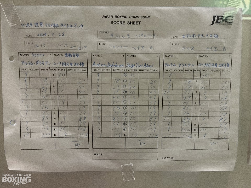 日本の関係者に感謝の気持ちを伝えたダラキアンは、ユーリ阿久井について聞かれると、「ボクサーとして優れている。私よりも若い。ガツガツしてる印象。時というのは残酷だと感じた。負けたと思った。(チャンピオンが入れ替わる時には)鮮やかな勝ち方をするものかな、と考えていたが、判定結果に不満はない」と冷静に答えた。