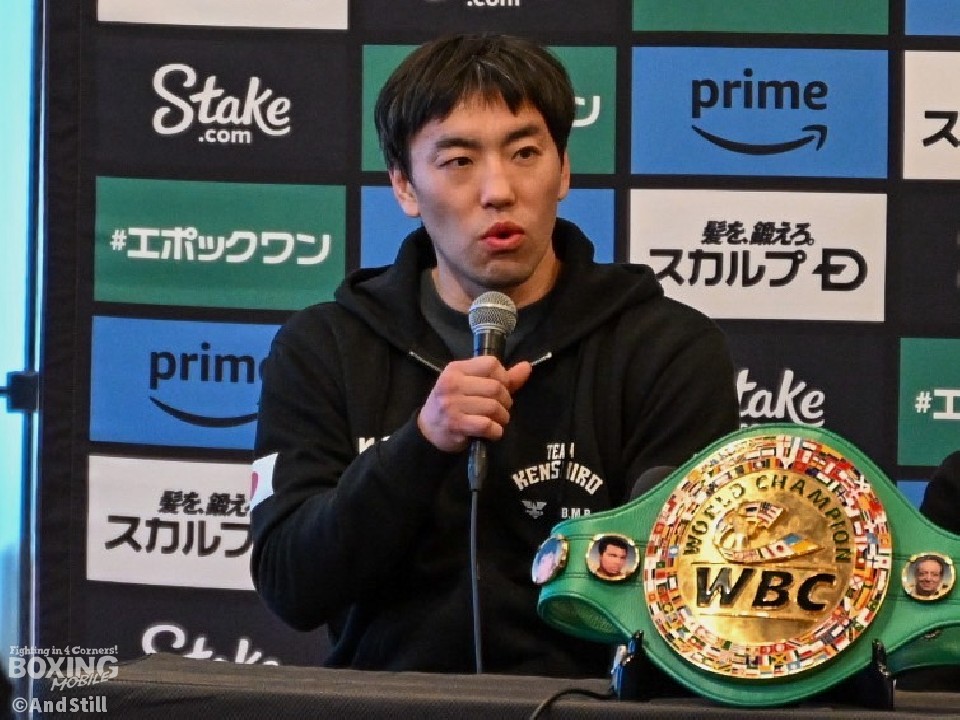 試合に関して「打ち合いに来た時のしのぎ方など課題はあるが、序盤にダメージを与えて(カニサレスの)追い足を止められたのが勝因だと思う」と試合を振り返った。それでも、試合を左右した終盤に関して「9回と10回は(ポイントを)取られた。10回は確実に取られたので、中途半端な距離なら足を使え」と指示したことを明かし、「10回は中途半端な距離にいた。9回と10回で(ポイントが)追いつかれたと思った」とし、足を使って戦った11回の作戦に関しては「11回は賭けではあった」と難しい選択を強いられた場面を回想した。昨夜の試合後会見と同様に、「伸び代がまだまだある」と、さらなる成長に期待を寄せた。