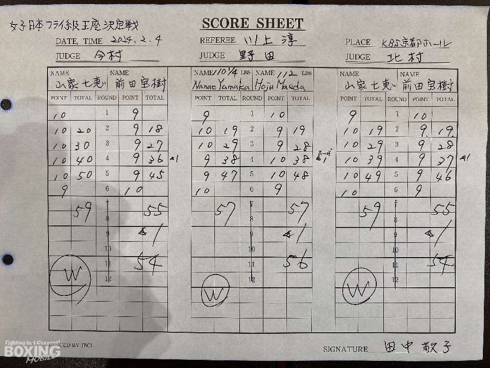 日本女子フライ級王座決定戦が4日、KBS京都ホールで開催された「To the Future vol.30」のセミファイナルで行われ、同級1位の前田宝樹(20=姫路木下)と同級2位の山家七恵(32=EBISU)が熱戦を繰り広げた。