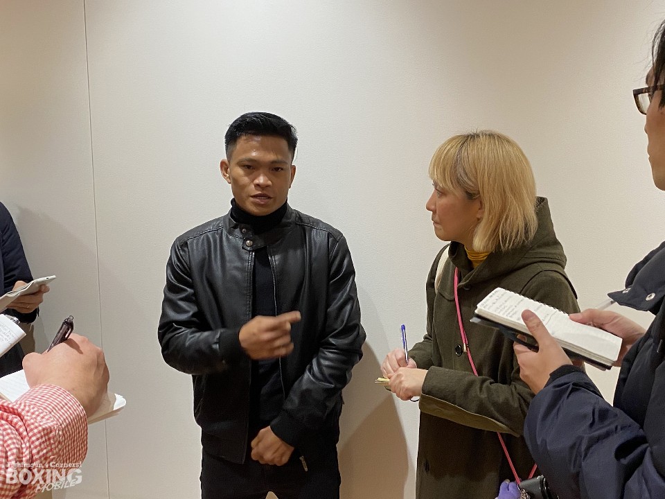 「フィリピンは今、世界チャンピオンが不在。必ず勝ってベルトを母国に持ち帰るという強い気持ちが最大の武器だ」と静かに闘志を燃やした。物静かだが、非常に落ち着いており、元世界王者の風格を感じさせた。