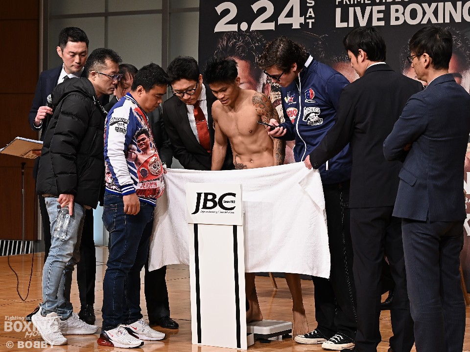 「Prime Video Presents Live Boxing 第7弾」の前日計量が23日、都内の東京ドームホテルで行われた。WBA世界バンタム級チャンピオンで、初防衛戦に臨む井上拓真(28=大橋)と、挑戦者で同級9位の元IBF世界スーパーフライ級チャンピオンのジェルウィン・アンカハス(32=比)が計量台に上がった。