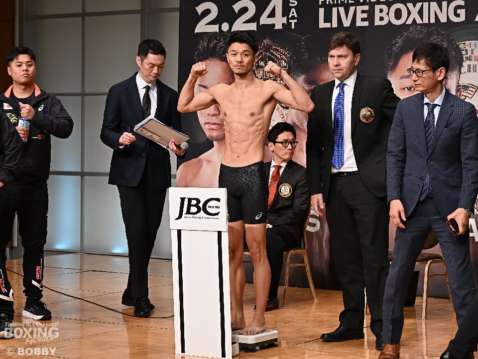「Prime Video Presents Live Boxing 第7弾」の前日計量が23日、都内の東京ドームホテルで行われた。WBC世界バンタム級チャンピオンのアレハンドロ・サンティアゴ・バリオス(28=メキシコ)と、同級1位で世界3階級制覇に挑む中谷潤人(26=M・T)は、無事計量をクリアした。