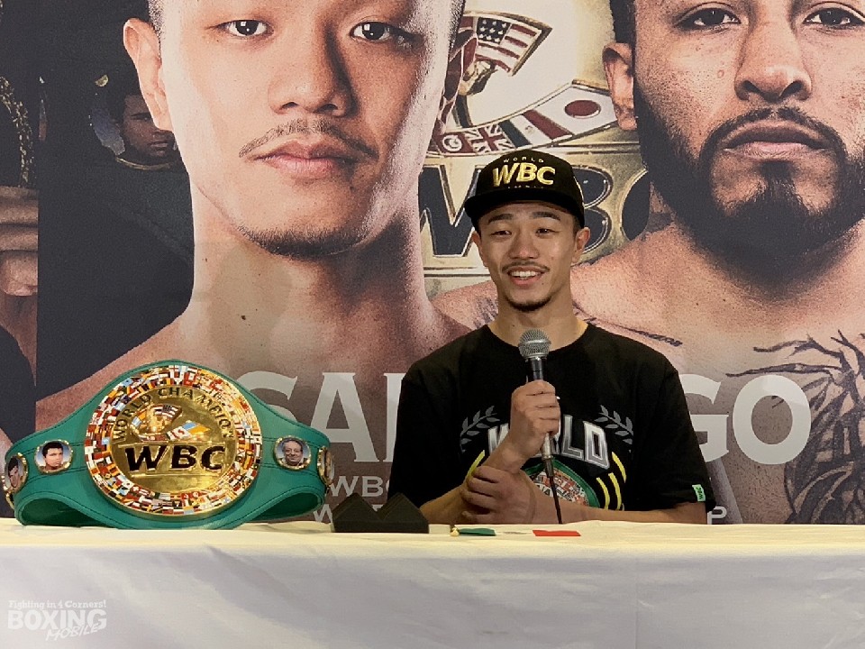 ダウンシーンに関して「6ラウンドからテンポを上げ、リラックスして出せた左ストレートでダウンを奪い、最後は左でバランスを崩し、右で倒した。サンティアゴは、色々な大きい選手と試合をしてきたと思うが、僕みたいなタイプはいない。遠く感じてくれたと思う」と、完全勝利に笑顔を見せた。